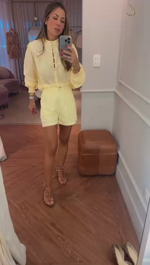 Tecido Cambraia de linho com forro em viscose.Braguilha com fechamento em zíper.Cós com colchete interno e passantes pra cinto.Bolsos frontais.