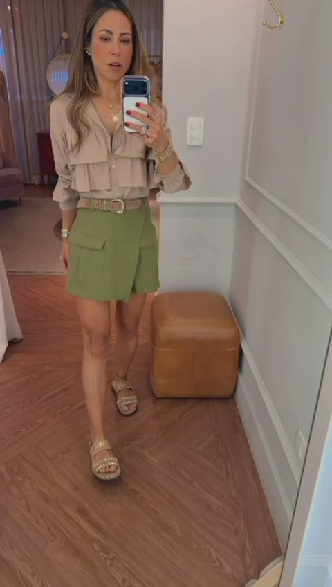 Fechamento em zíper de metal ouro velho na parte de trás.