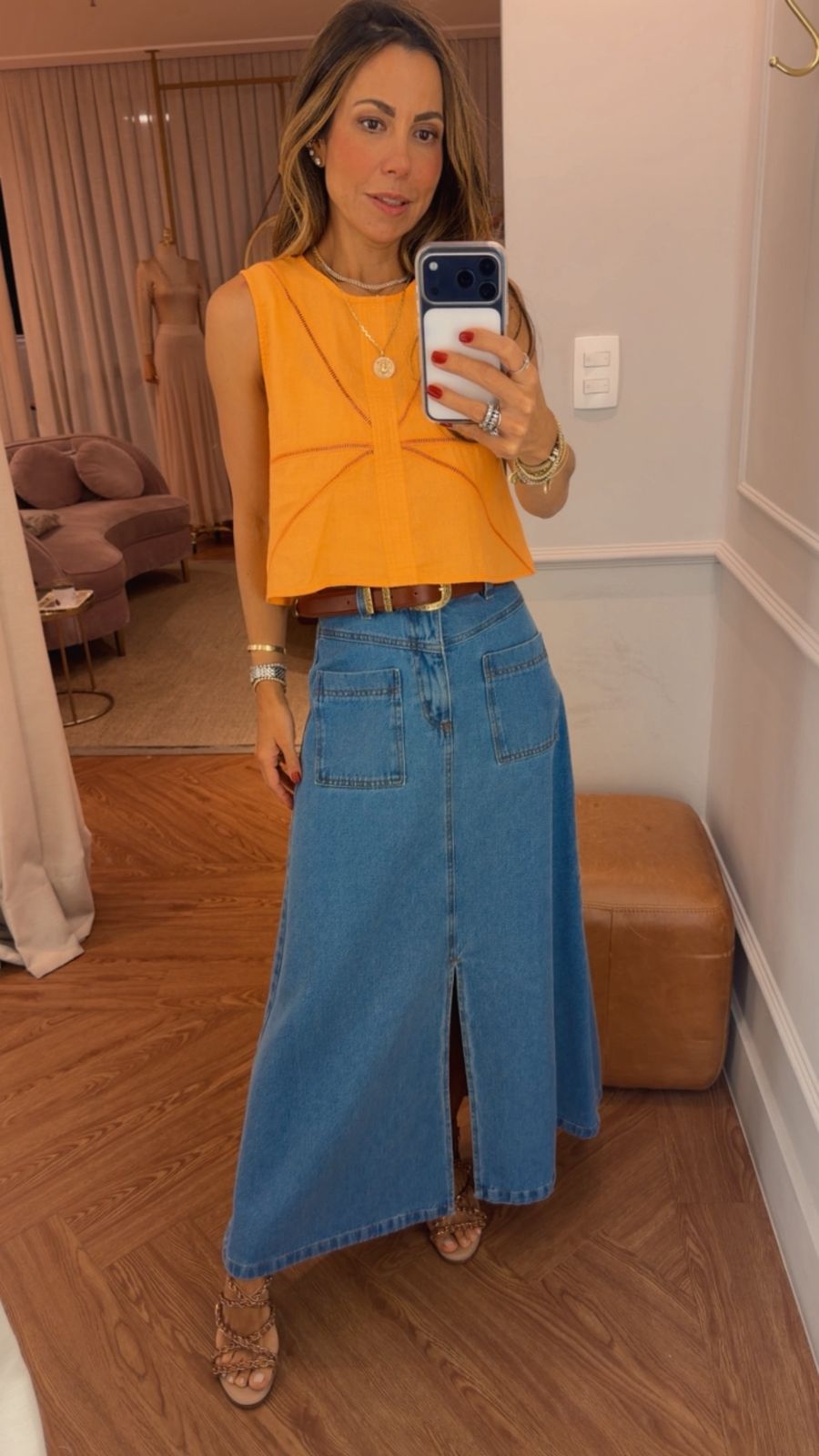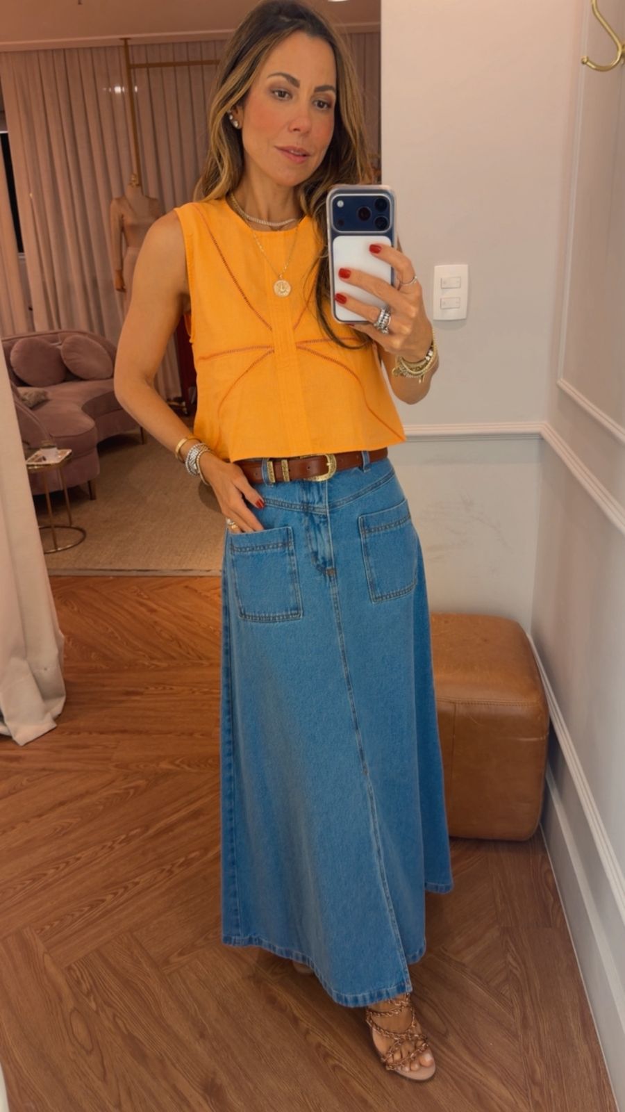 Fechamento traseiro com botão madrepérola.
