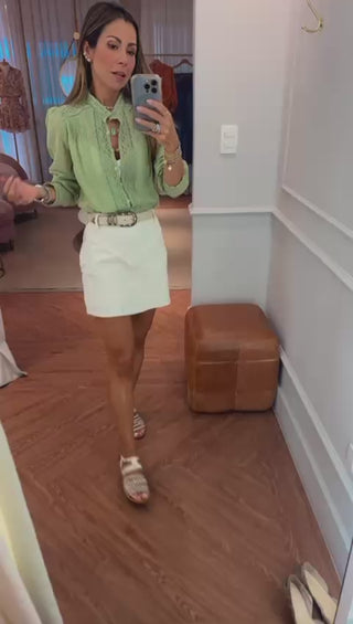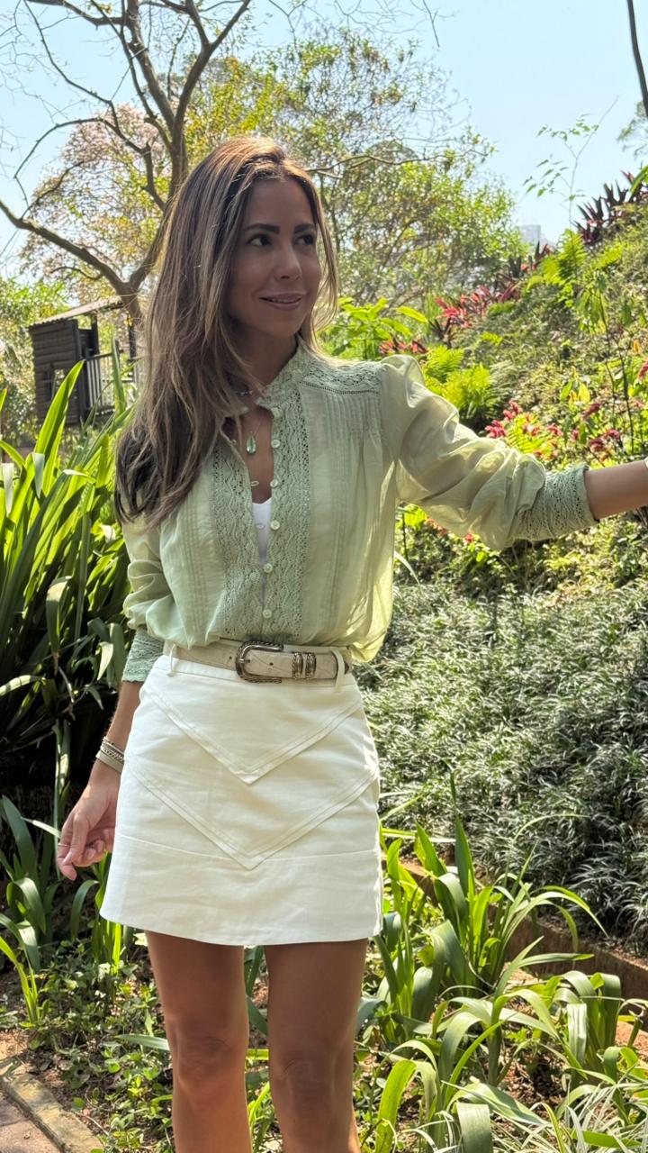 TecidoVoil de algodão.Rendas em algodão.Camisa manga longa com punhos em renda.Botões em madrepérola.