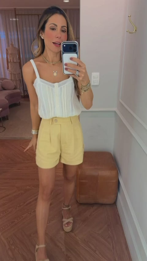 Ajuste cintura com cordinha.